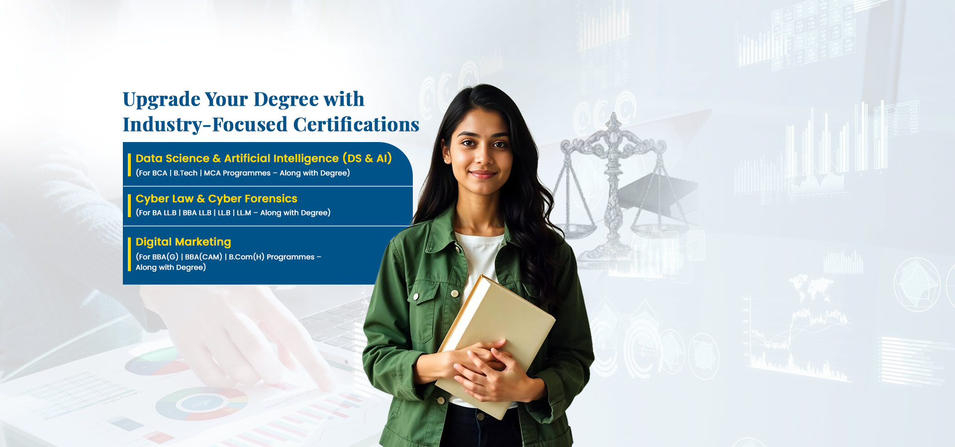 A professional law degree for graduates who want to practice law, prepare for judiciary exams, or work in corporate legal roles.